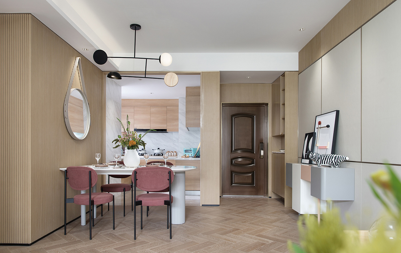 主题简约明亮:简约风格的特点是简约明亮。它主要是用简单的方式来获取人们对简单空间的需求,尤其是对于人们生活节奏的加快和精神空间的强烈压迫。现代简约最适合