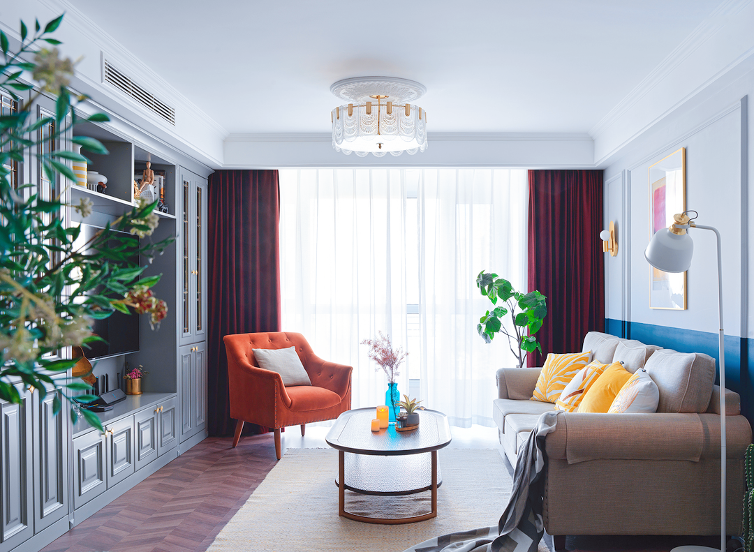 90㎡混搭美式二人居,大胆用色的设计