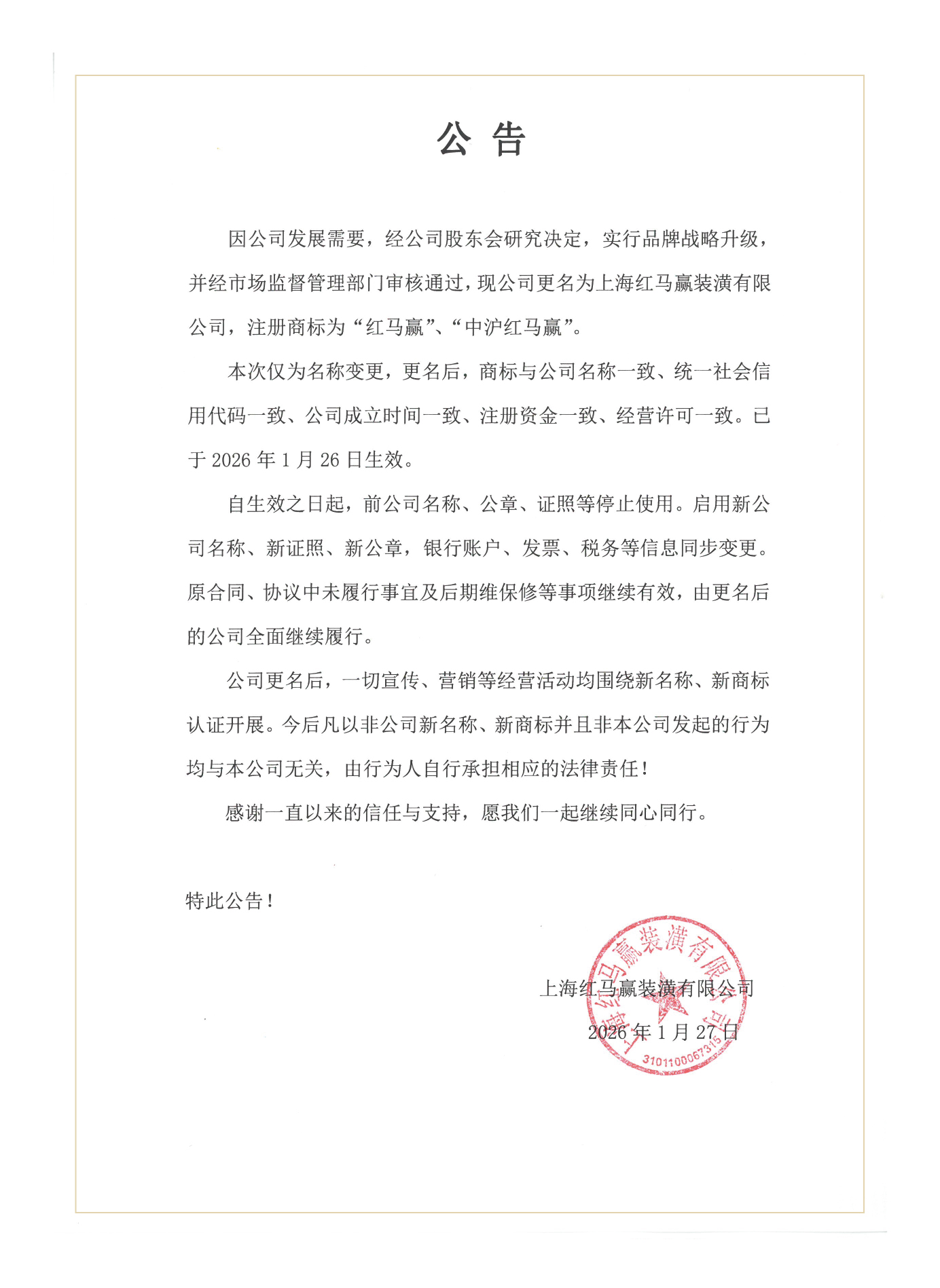 上海红马赢装潢有限公司