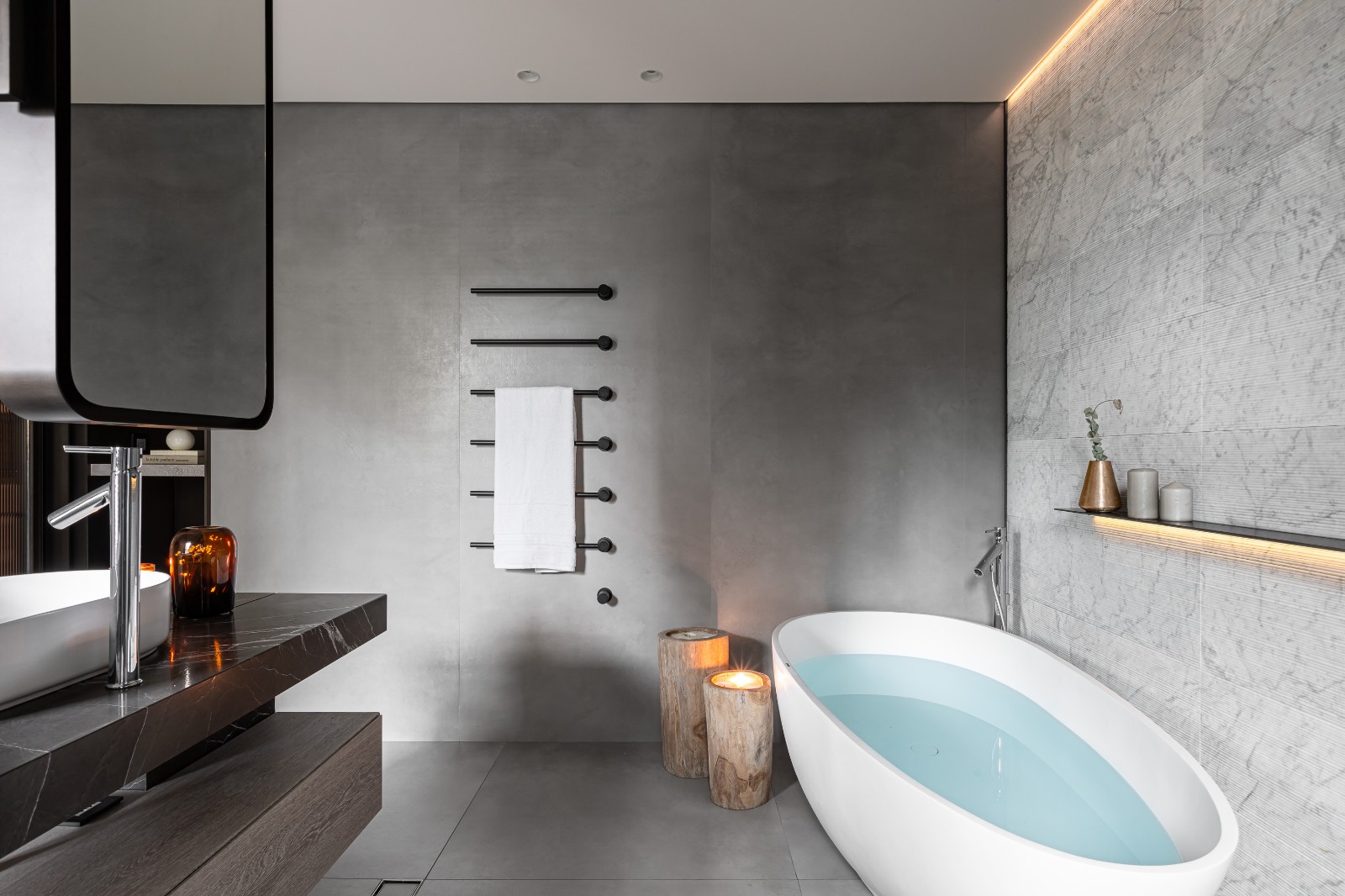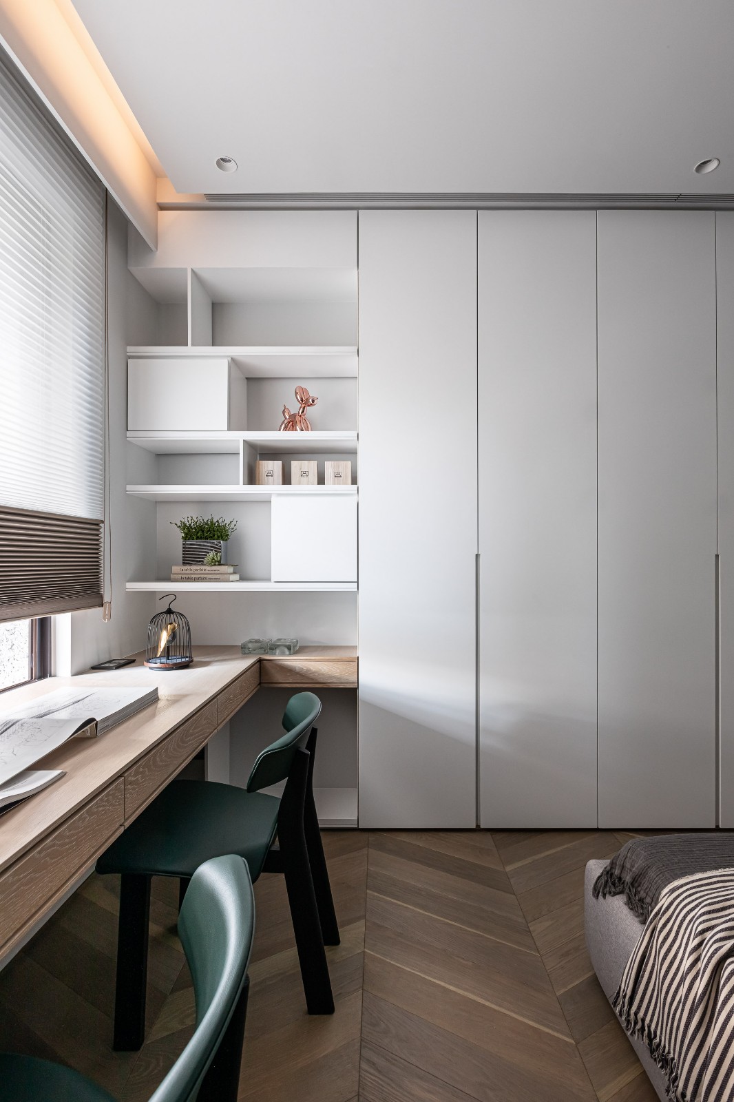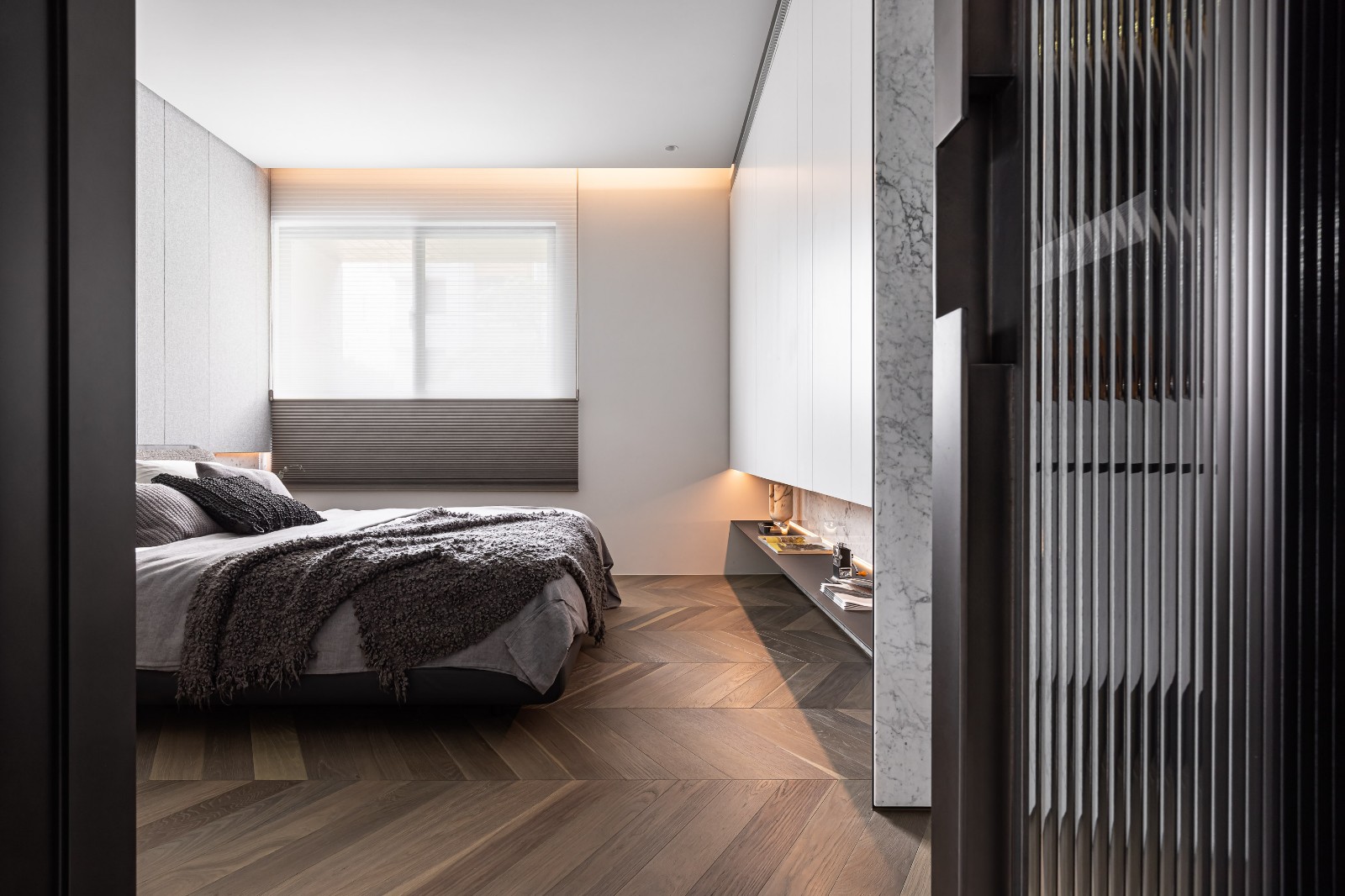 用简约干练的线条来打造整个家庭,在简洁的同时也通过一些精致小巧的元素来满足功能,凸显细节,在硬朗的线条之下隐藏着高贵的质感与格调,让整体看起来更加豪华简约,而不简单