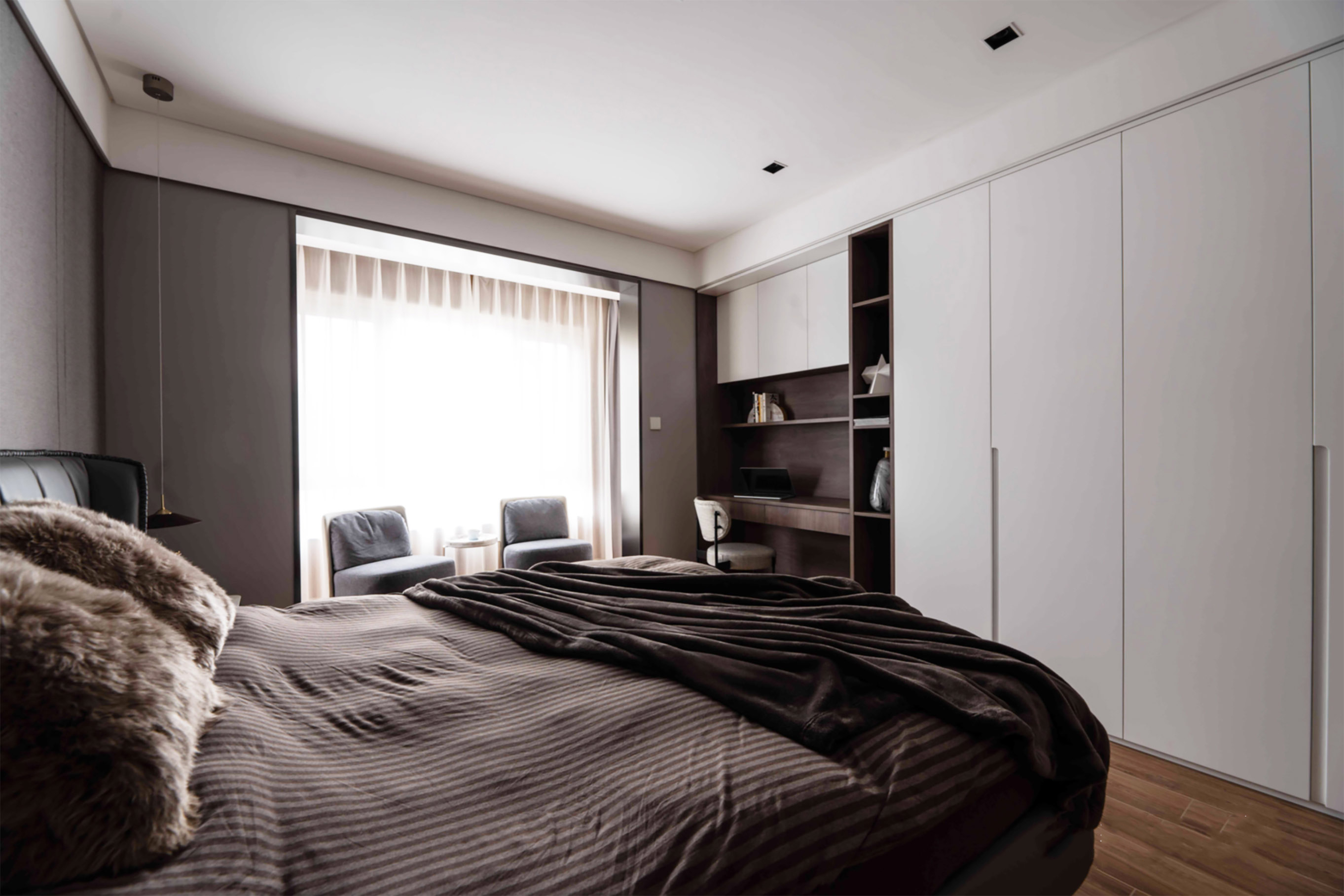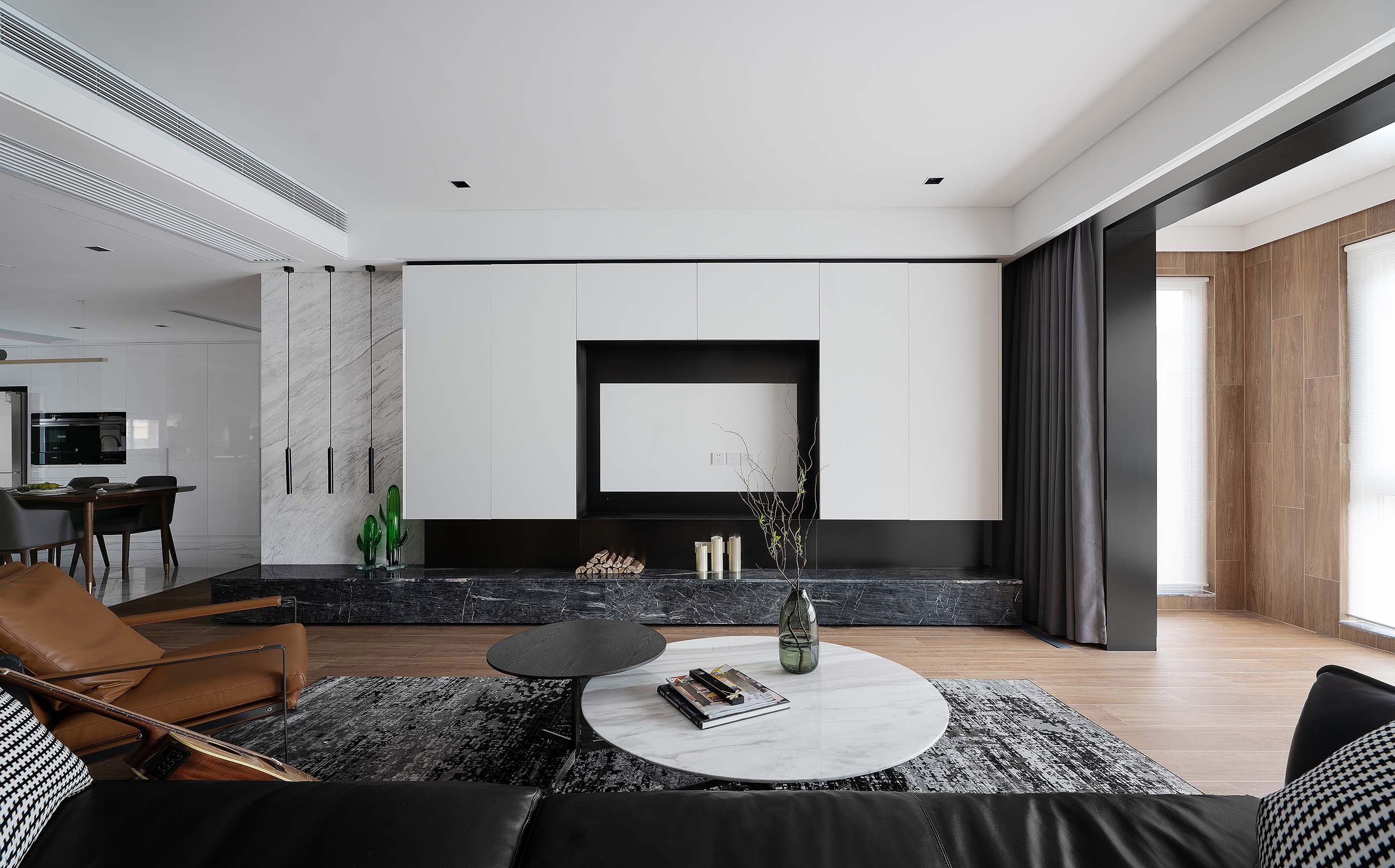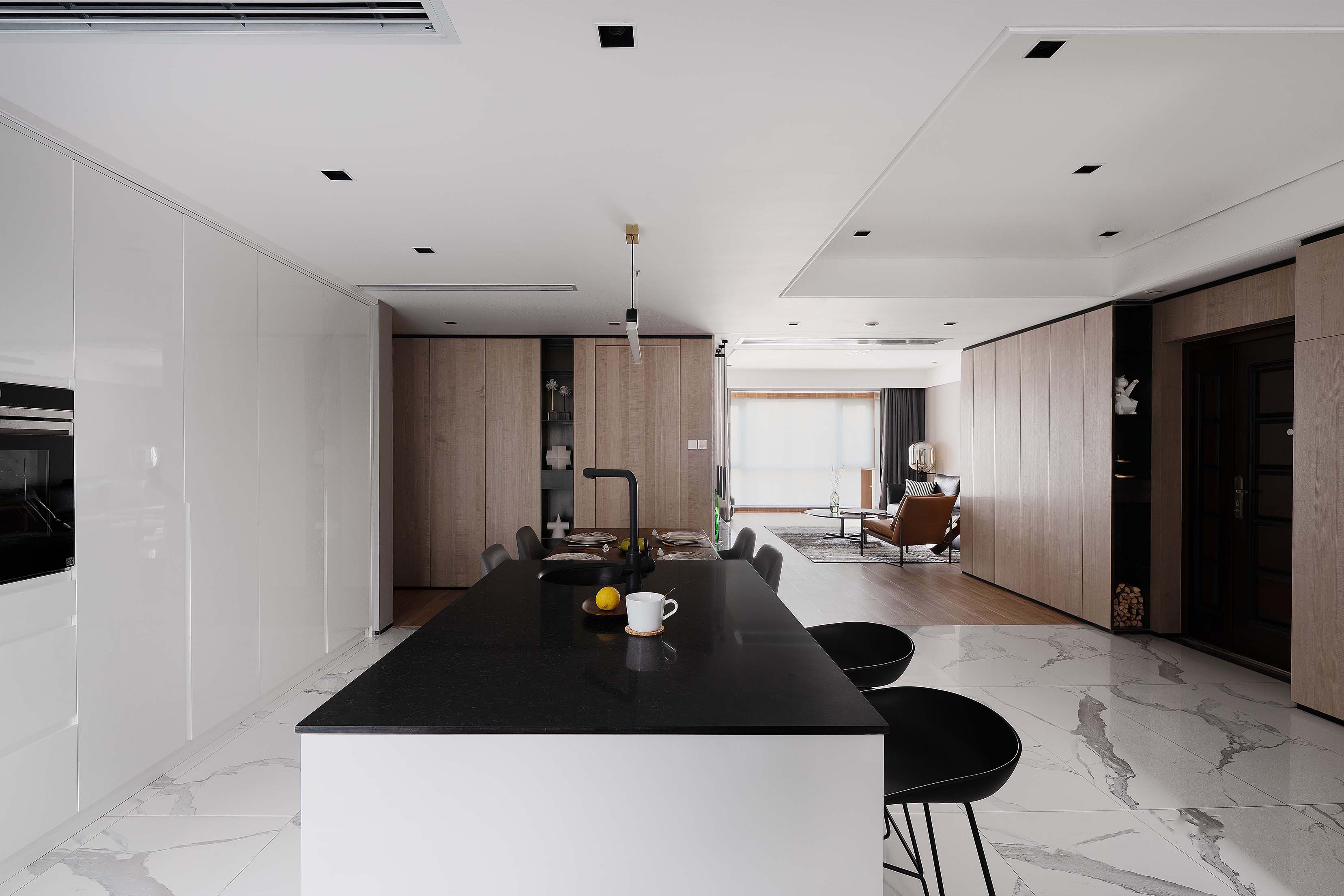 设计着重于思考人们生活与环境的多层级关系,借鉴黑白影像的哲学,剥去热带缤纷旖旎的色彩,褪去环境喧嚣的表象,发掘居住者最真实的诉求,多层次展现生活的真实轮廓,以及空间自身蕴含的能量与内力。
