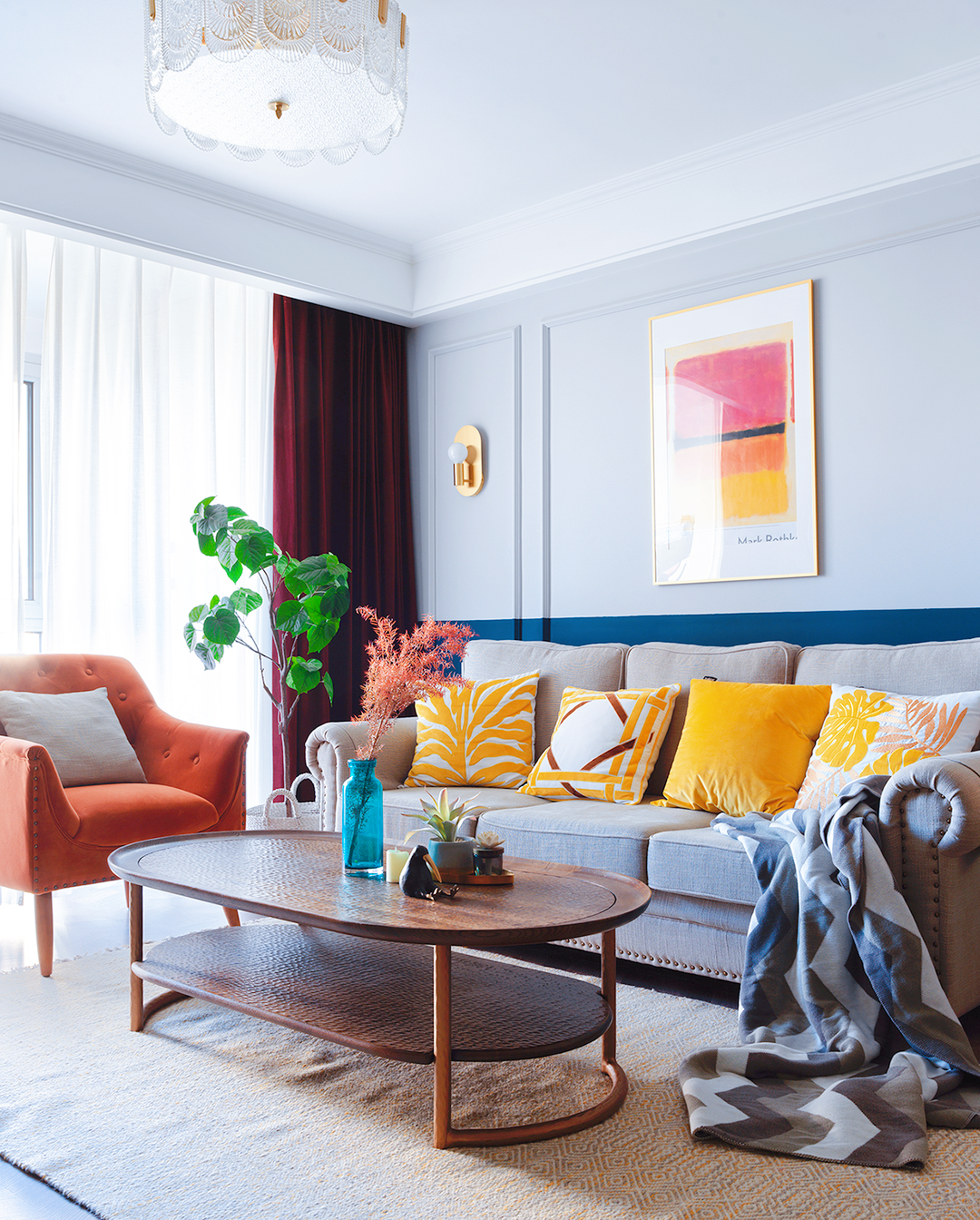 90㎡混搭美式二人居,大胆用色的设计