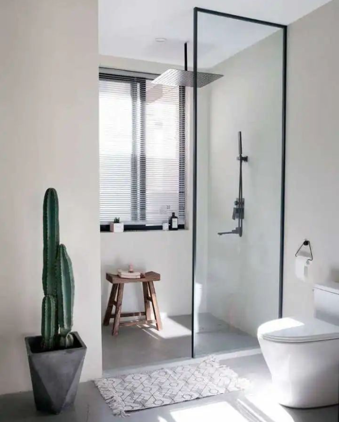 如果不做独立淋浴房,淋浴区与干燥区之间可采用玻璃隔断,视觉上显得清新通透,受空间限制更少。